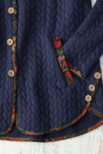 The delight of details, plus warmth without weight. Our soft, unlined knit jacket features quilted cabling and pop-of-floral trim, with functional wood buttons in front and at the hips. Oversized hood, slant pockets and extra pockets inside.