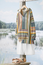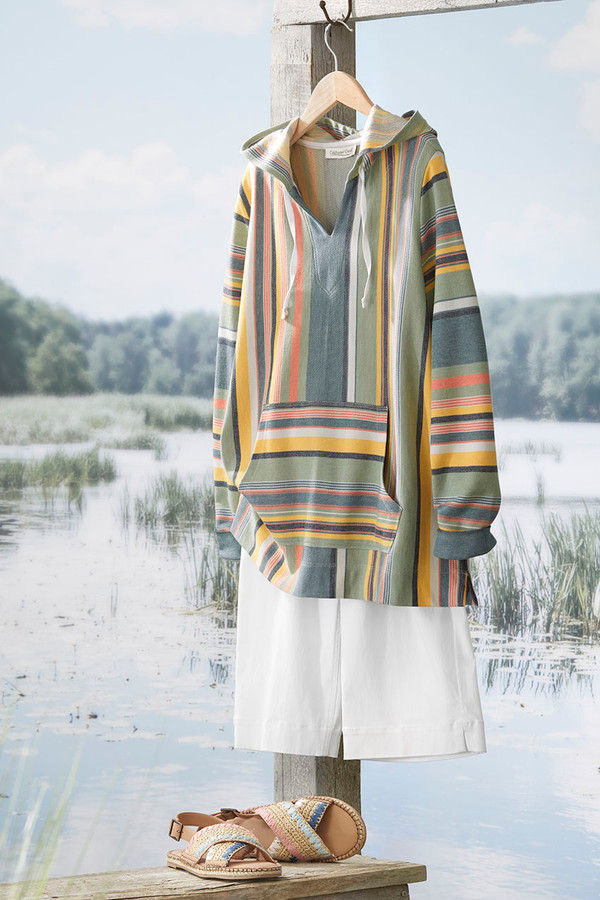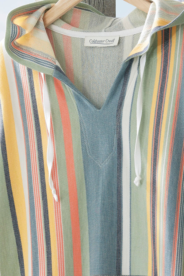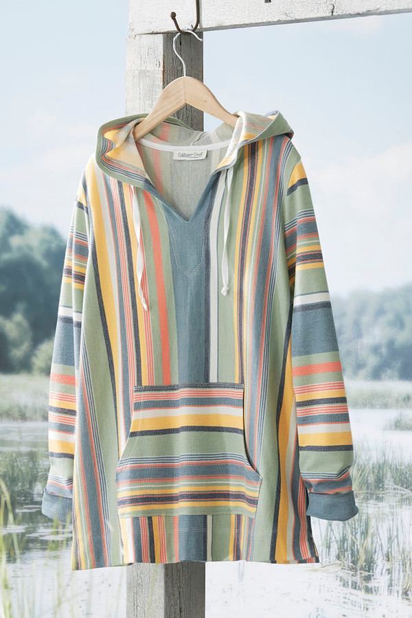 Serape stripes and a kangaroo pocket give this hoodie a take-it-easy attitude. Soft, comfortable terry, with a drawstring hood and side-slit hem.