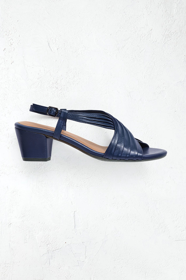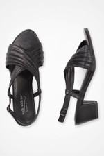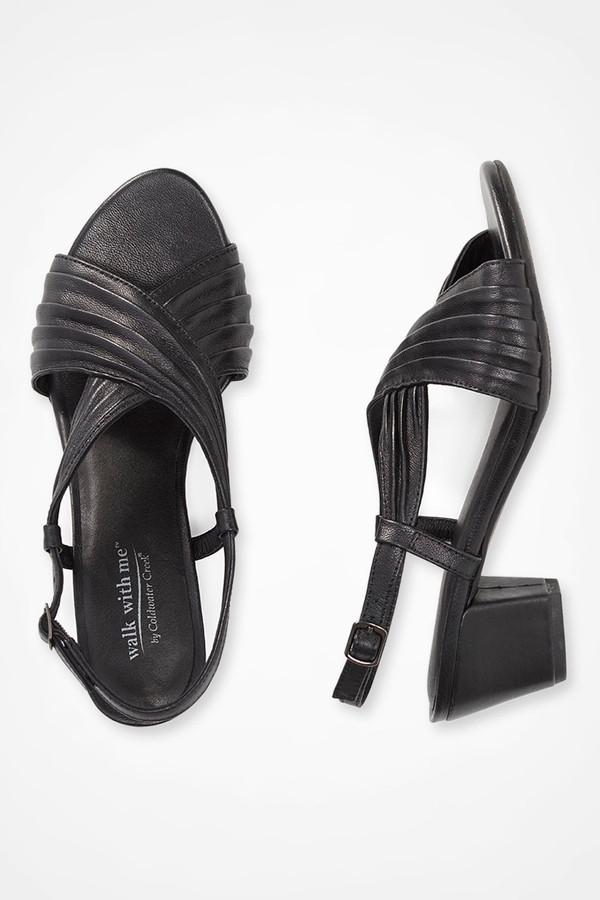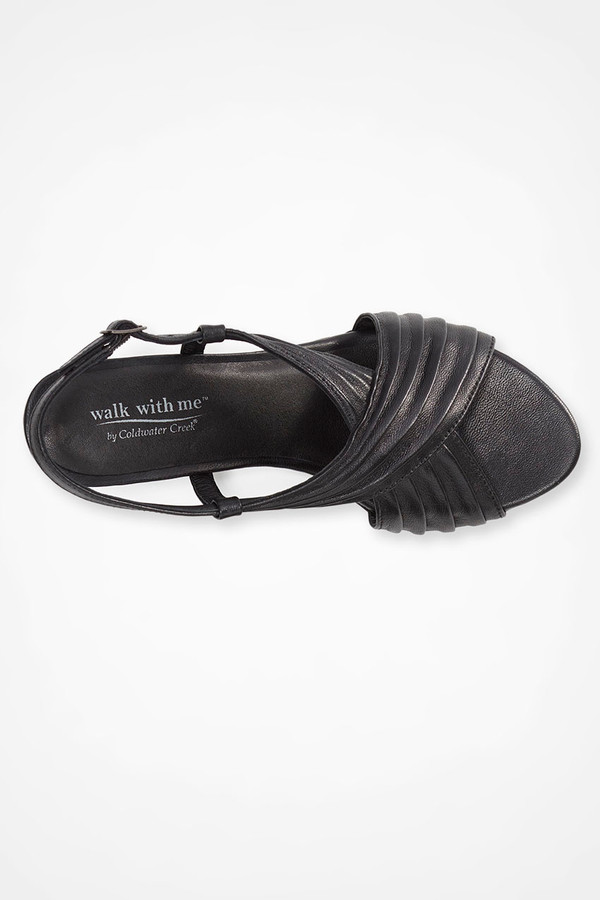 Deeply pleated crisscross straps give these leather sandals a rich look – and might inspire dancing. Slingback buckle closures with side straps for a secure fit, cushioned footbeds.