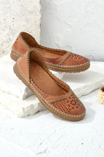 Genuine leather flats with metallic accents feature mixed cutouts and scalloped edges for detailed style. The easy slip-on design with cushioned footbeds and ½" platforms offers comfortable wear for everything from morning errands to casual dinners out.
