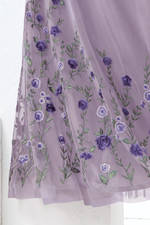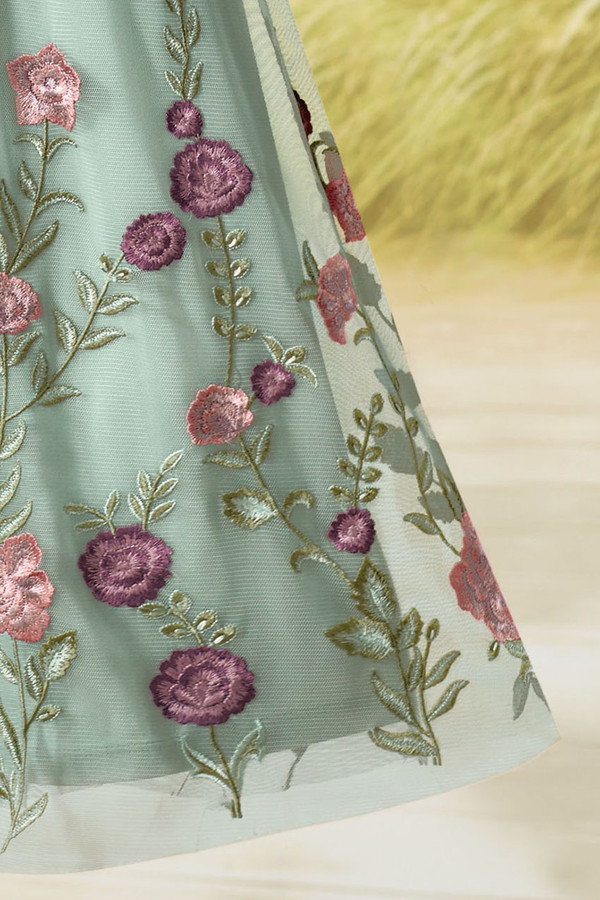 The enchantment of spring, captured on a 2-layer dress – solid lining beneath, overlaid with light-as-air mesh. Slipover style is elaborately embroidered with florals on front and back, with sheer flutter sleeves and flattering boatneck.