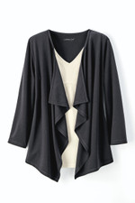 Go with the flow in this Destinations by Coldwater Creek® open-front, longer-length cardigan in our exclusive wrinkle-resistant travel knit. New, lighter fabric has fluid drape and retains its shape, whether it’s hung or folded.
