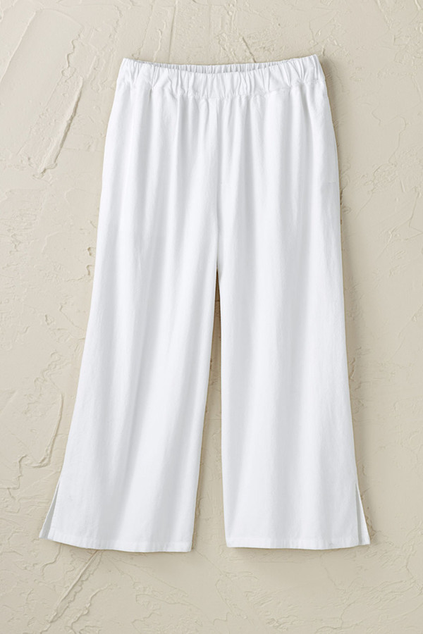 Enjoy a vacation vibe, every day. These ultra-lightweight gauze crops are ready for anything – perfect go-to’s for hot days. Pull-on waist, long side slits, on-seam pockets. Relaxed through hips.
