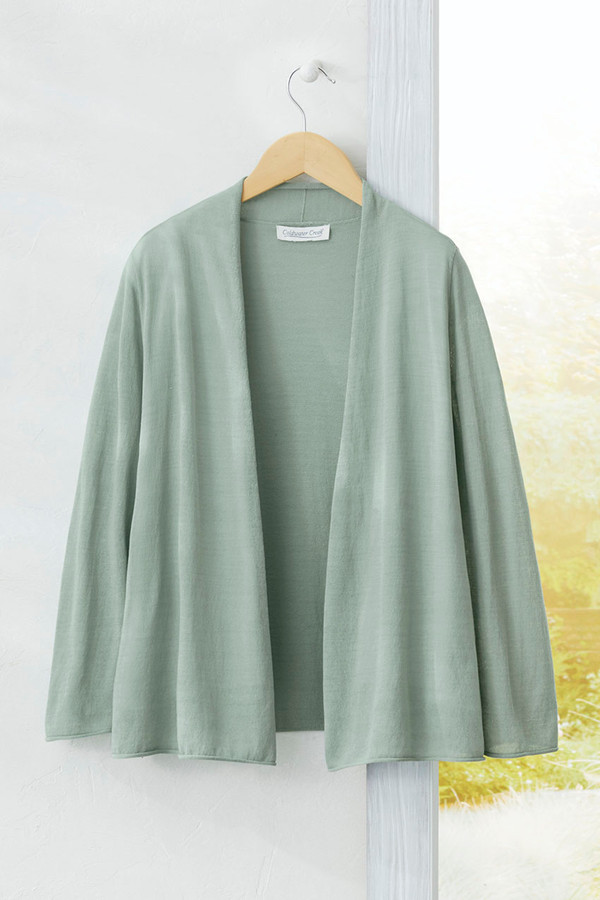 A perfect lightweight layer, graceful and finely knit – with just-right coverage and beautiful drape. Finished with naturally rolled edges at the cuffs and hem.