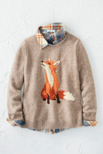 This winsome fox only has eyes for you… and the soft, color-flecked yarns of this autumn-charmed sweater. Intricately detailed jacquard in a midweight style that’s easy to layer. Ribbed trim, side-slit hem.