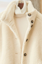 It’s time for cozy textures and warmer layers. Savor the feel of our plush sherpa fleece coat, with a high stand collar and faux fur-lined pockets. Midweight, with button front, slit high-low hem and button-cuff long sleeves.