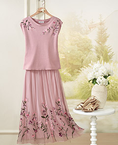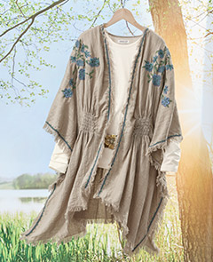 Beautifully free-spirited, this patchwork print dress features etched florals and embroidered trim down the front, with a boho-inspired high-low hem. Light, breezy slipover style with banded neckline and armholes. Detachable polyester knit lining.