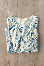 This lightweight cotton modal tee brings natural beauty to your everyday wardrobe with its meadow-inspired floral print. The soft slub jersey fabric offers breathable comfort in a relaxed fit that hits at mid hip. The 3/4-sleeves and a classic crewneck make it perfect for layering or wearing solo. Pair with your favorite jeans for casual days or layer under cardigans for cooler weather.