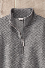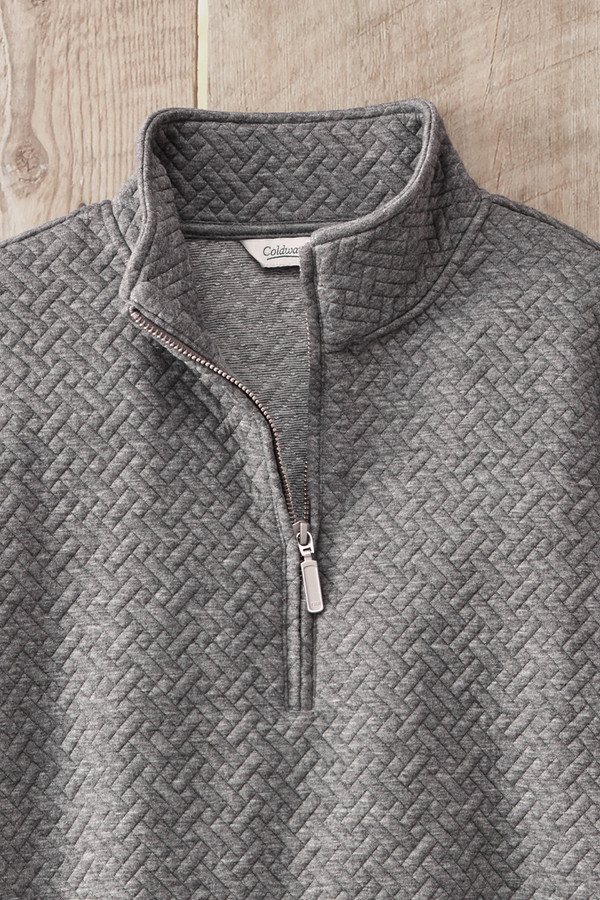 Your new everyday-comfort top features a quilt-like jacquard texture in a basketweave pattern that adds visual interest to this versatile sweatshirt pullover. The quarter-zip mockneck lets you adjust your coverage and warmth, while slant welt pockets add a practical finishing touch. The midweight fabric feels substantial without being heavy, making this perfect for layering or wearing on its own. Pairs beautifully with jeans, leggings, or joggers for comfortable style.