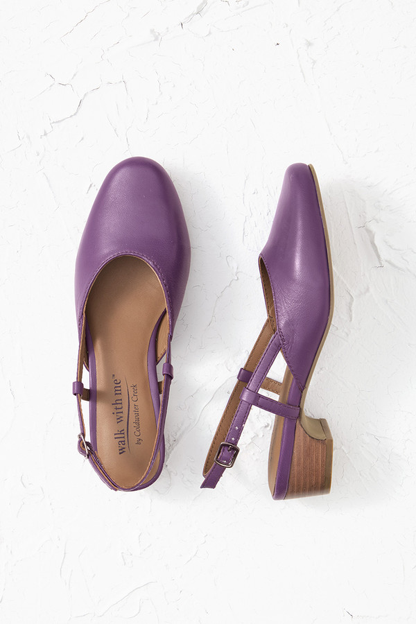 Leather slingback heels offer a fresh take on our best-selling style, featuring buckled heel straps with vertical support straps for a secure, comfortable fit. Cushioned leather footbeds, 1" stacked heels and rubber soles deliver supportive wear for everything from work meetings to dinner out.