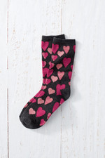 Product Description Falling, floating or evenly spaced… these heart-patterned socks give your feet a little love. One size fits most. Polyester/spandex. Machine wash. Fabric & Care Polyester/spandex Machine wash Imported Share Share on Facebook Share on Pinterest Share on Email Print page