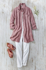 A lightweight, go-to piece you’ll love season after season – now with a slightly trimmed length for a flattering fit. Great to wear buttoned as a shirt or open as a topper, dressed up or down. Side pockets and one patch pocket, long button-cuff sleeves, shirttail hem.