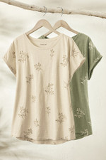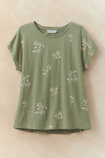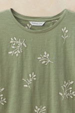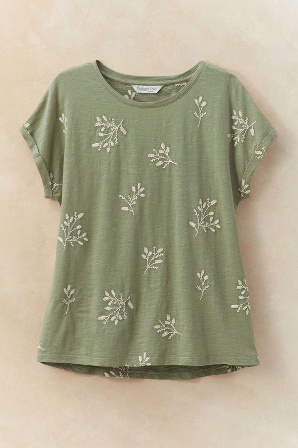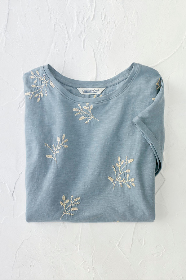 Wisps of embroidered grasses give this tee a natural, summer-afternoon attitude. Allover embroidery, with cuffed dolman sleeves and a slight elliptical hem.