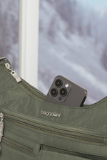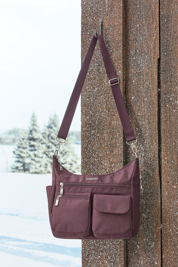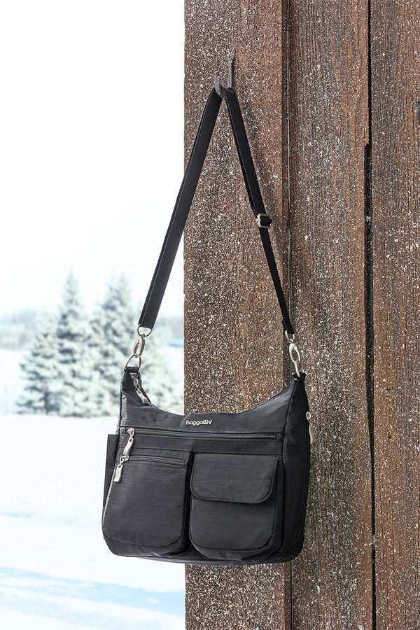 Keep yourself organized with this exceptionally handy bag featuring plenty of outer and inner storage pockets plus a dedicated phone pocket. The removable wristlet includes RFID protection and three card slots, while the luggage handle sleeve ensures seamless travel. The 52" adjustable and detachable crossbody strap offers wearing versatility.