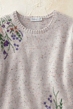 This detailed pullover sweater features wildflower embroidery and pointelle accents in soft color-flecked yarns. The comfortable fit ensures easy movement while the artisanal details make this a truly special piece for everything from casual weekends to gatherings with friends. Layered or solo, it’s perfect for pairing with jeans, corduroys, or leggings.