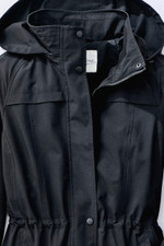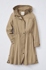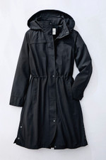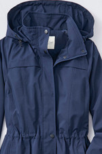 Our best-selling jacket – now in a longer length! Lightweight and rain-resistant, it packs into a hidden zippered pouch beneath the upper back vent – just pull out the pouch and roll the coat in. The hood can also be zipped into the collar; inner drawstring hits at the waist. Drawstring hood, zip-and-snap front, two slant pockets. Button-cuff sleeves, mesh upper lining, snaps at side hem.