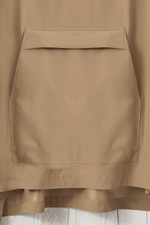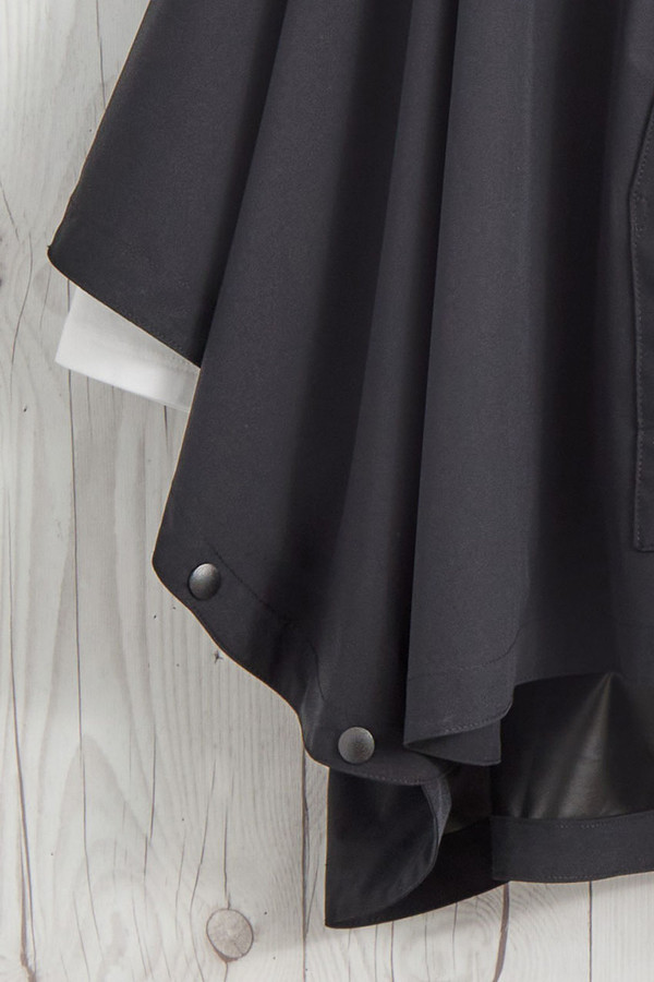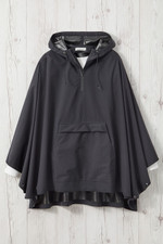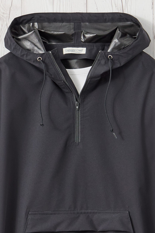 This versatile waterproof poncho raincoat provides complete rain protection in any season with a generous fit that accommodates light layers, coats, and handbags underneath. Features include a quarter-zip drawstring hood, long open sleeves with snap closures, and a convenient kangaroo pocket with an additional zippered storage compartment. Perfect for travel, outdoor events, and everyday use, this rain poncho extends long enough to protect you even when sitting on wet surfaces. The lightweight, drapey design folds compactly into the hidden zippered pouch inside the front pocket for easy packing and carrying. Thoughtfully sized to wear comfortably over summer outfits or bulkier winter layers while maintaining freedom of movement.