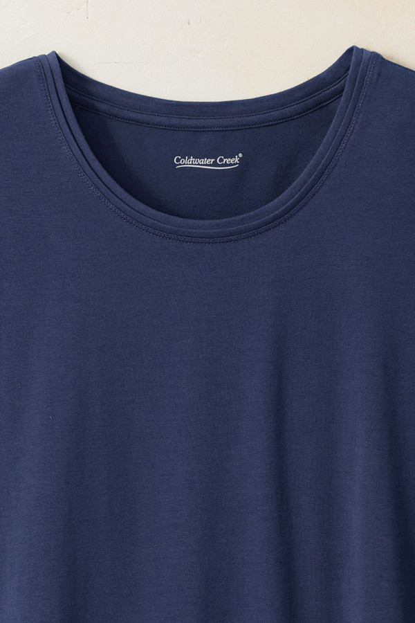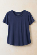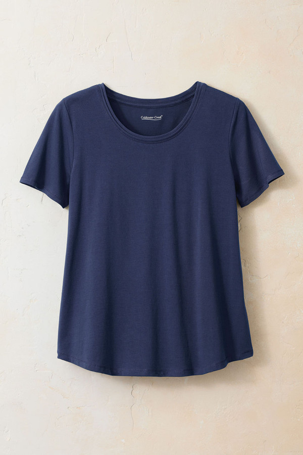 Our super-soft exclusive knit, in a fluid-drape tee with double-layered scoopneck and rounded hem – now updated with a flattering, slightly shorter length. Relaxed fit, hits mid hip.