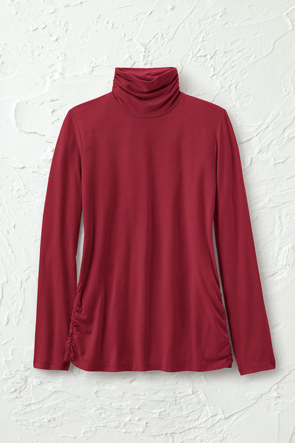 Supremely soft and lightweight, our exclusive knit blend has superb stretch and shape retention – it drapes and layers with ease. Ruched at the sides of the neck and hem.