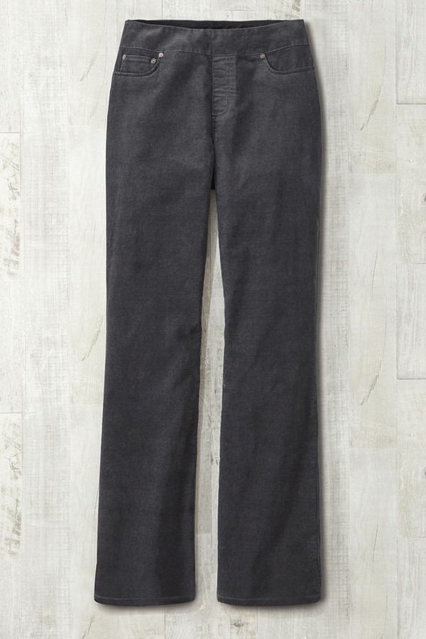 These pull-on corduroy pants combine comfortable ShapeMe® tummy control technology with the convenience of an elastic waistband and classic 5-pocket styling. Soft to the touch with a hint of stretch, and faux fly.