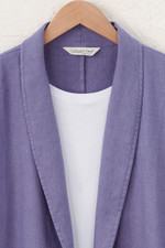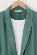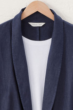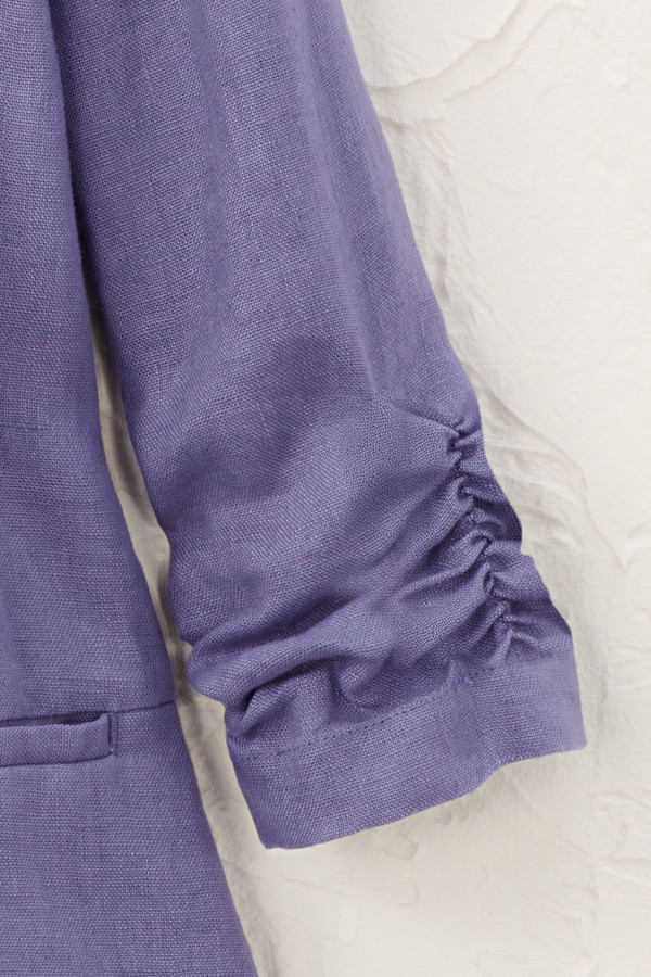 A best-selling silhouette, now in pure linen – the sweet spot between casual and tailored. Shawl collar, single-button front and ruched 3/4 sleeves. Midweight, with waist seam and welt pockets.