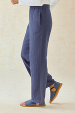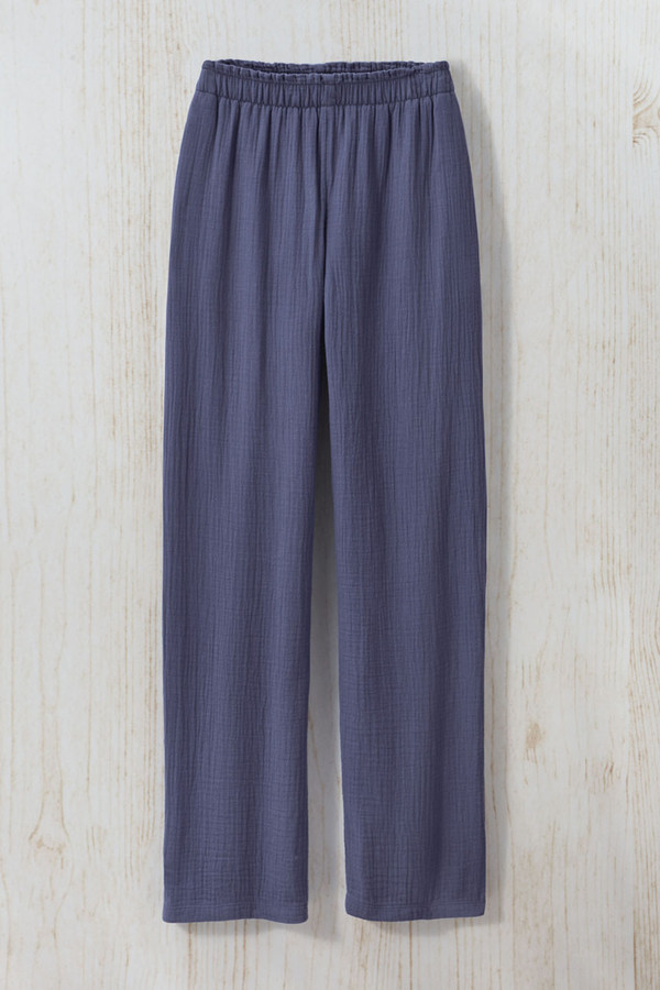 Light and easy in our favorite crinkled gauze, these go-to pants feature a comfortable pull-on waist and on-seam pockets. Relaxed fit through hips and thighs.