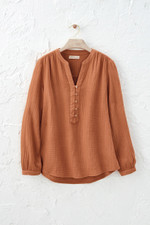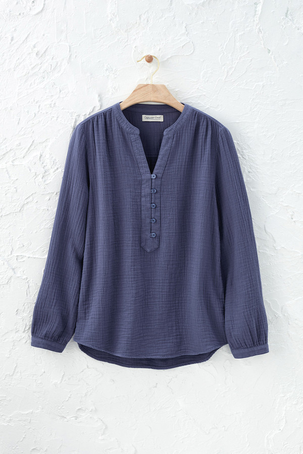 Make summer a breeze. Airy, textured cotton and a much-loved silhouette make this pullover a natural go-to for warmer days. Notched V-neck with partial button placket.