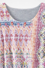 A blush of bright color warms up our soft burnout-textured tee in a mix of tile and border prints. Tacked cuffs, side slits, lined body. Imported.