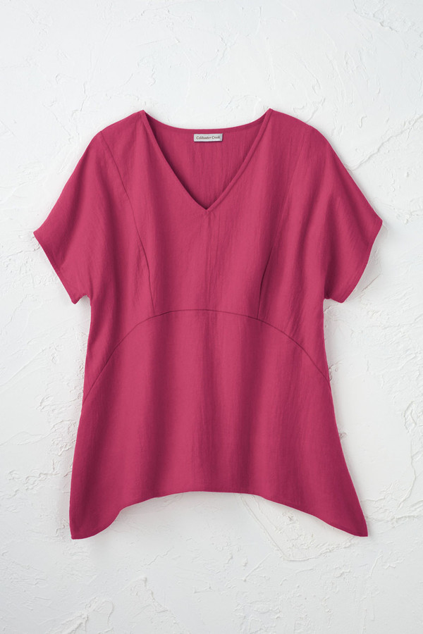The perfect choice for everything summer. Lightweight and breathable, our crinkled cotton top drapes easily with a deeply curved hem and matching seam detail, plus princess seams for gentle shaping.