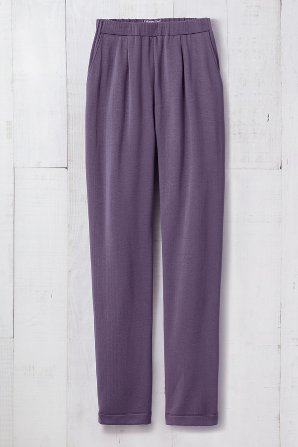 Midweight and indulgently soft, these pants keep you comfy everywhere. Fleece-backed knit is cozy and warm, with a pleated pull-on waist and jersey-lined slant pockets.