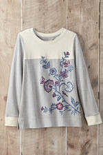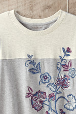 Expressive details make this cotton tee exceptional, with colorblocking that adds subtle depth and a flourish of bright botanical embroidery featuring perched birds. The soft slub knit feels wonderful wear after wear, while the easy, everyday silhouette works with jeans, leggings, or your favorite comfortable pants. Long sleeves, ribbed trim, and a side-slit hem add thoughtful finishing touches.