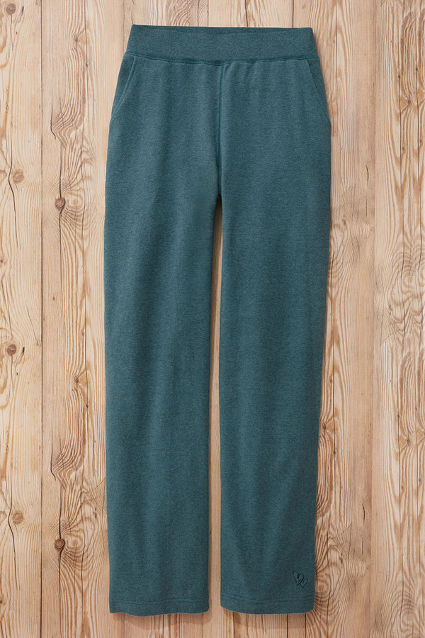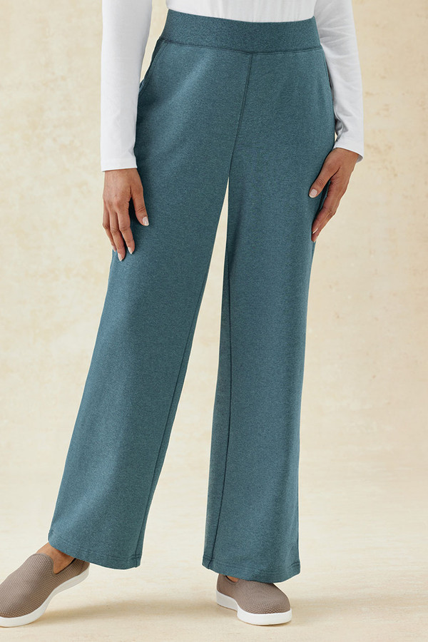 Perfect partner to our matching sweatshirt, these comfy pants are soft and smooth in sueded French terry. Ribbed pull-on waist, with front slant and back patch pockets. High rise sits at the waist, wide leg with 20" opening. Midweight cotton/spandex. Machine wash.